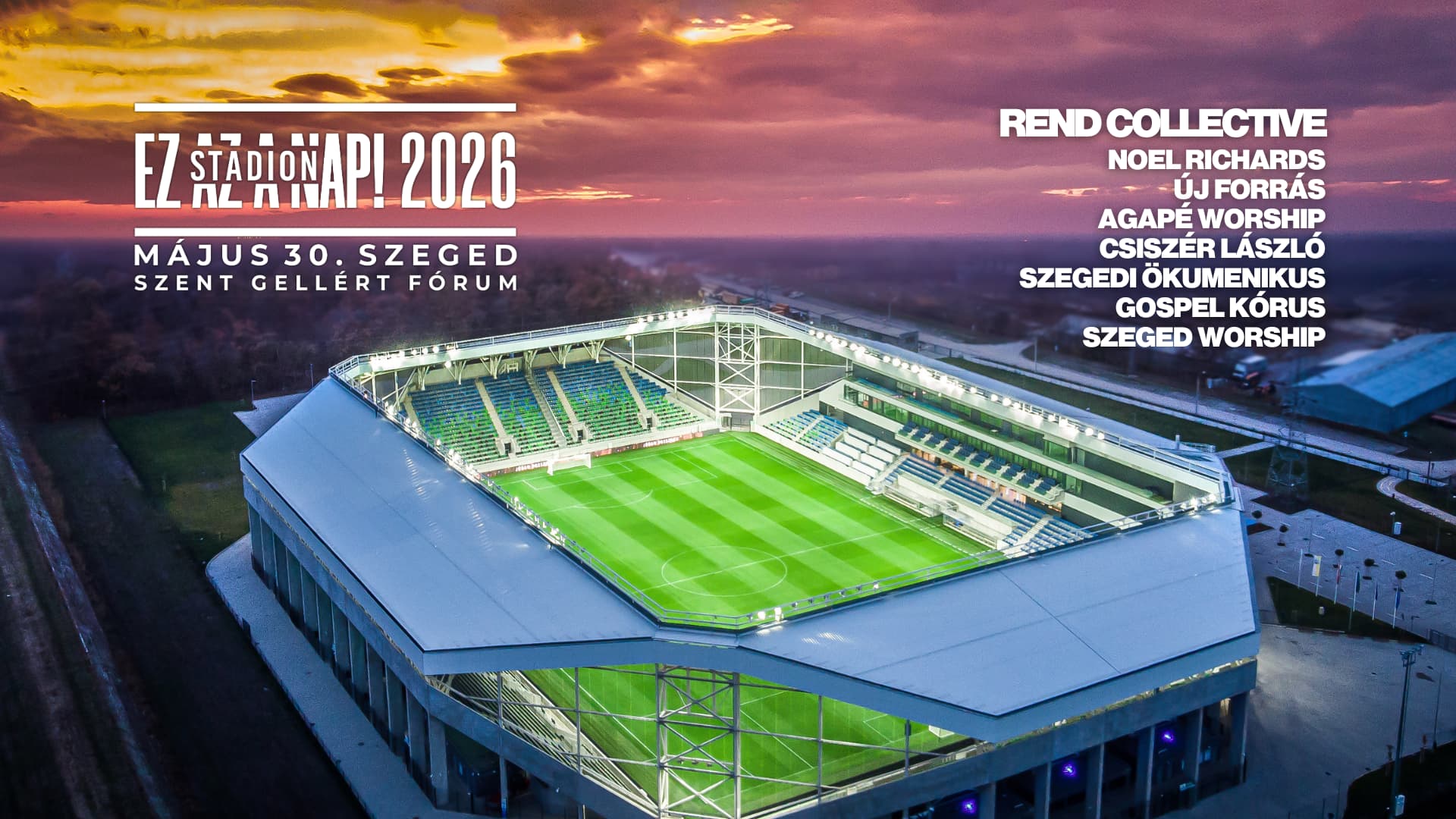 2026. május 30-án a szegedi stadion, a Szent Gellért Fórum ad otthont az Ez az a nap! következő nagyszabású rendezvényének. Ez már az ötödik stadion lesz – Budapest, Debrecen, Miskolc és Szombathely után – amit hitünk szerint megtöltünk Isten dicséretével! Hívunk ismét, gyűljünk össze egységben, dicsőítve Mennyei Atyánkat!